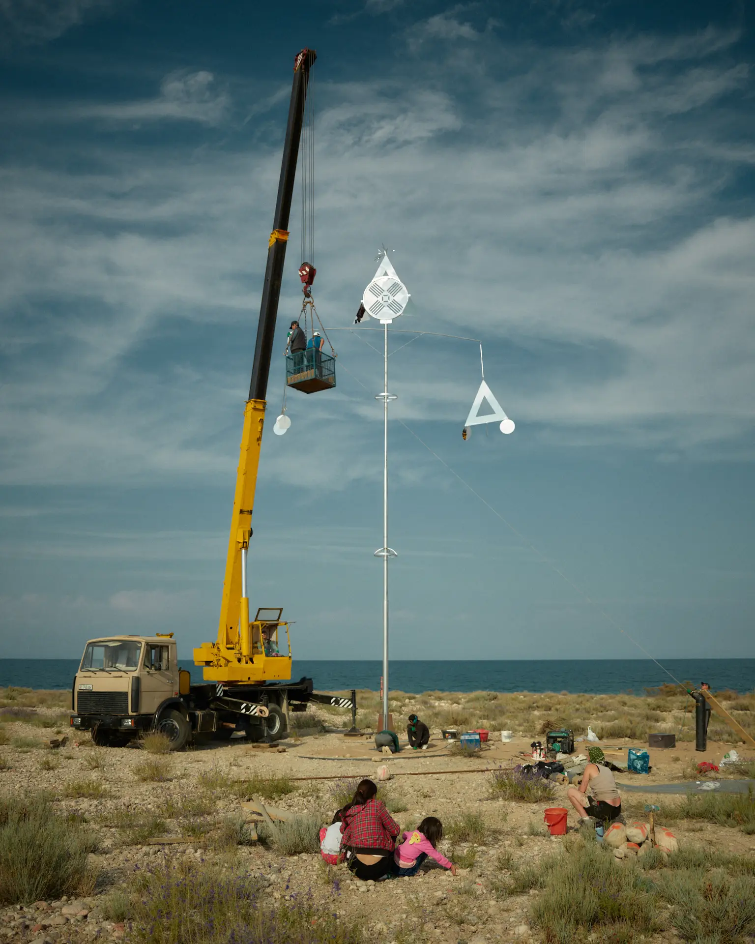 In September 2024, we spent a month building Chiy Koorchak, the first “bus stop” installation of our ongoing project, AK JOL – Art Mobil, on the southern shore of Issyk-Kul. Created in collaboration with Kyrgyz artist Altynai Osmoeva, community members from the Tong district, and the ArtCity team, this 12-meter-high art installation marks a significant milestone in our journey.